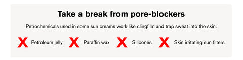 Here are a few reasons why we believe that our non-pore clogging sun creams are the best SPFs for skin that’s prone to heat rash: